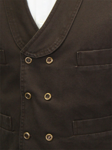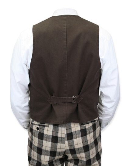 The Dawson Canvas vest features welt pockets, two at the waist and two at the breast. Eight metal buttons fasten the front for a mid to late 19th century feel.