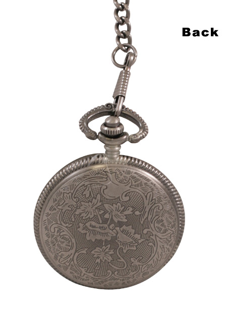 Bearing a vintage-look pewter finish, this pocket watch gives the impression of being handed down from grandfather to father to son. Quality Quartz movement tracks time to the hour, minute and second. A matching 14” chain, extra 1.55V battery and velvet storage bag are included.